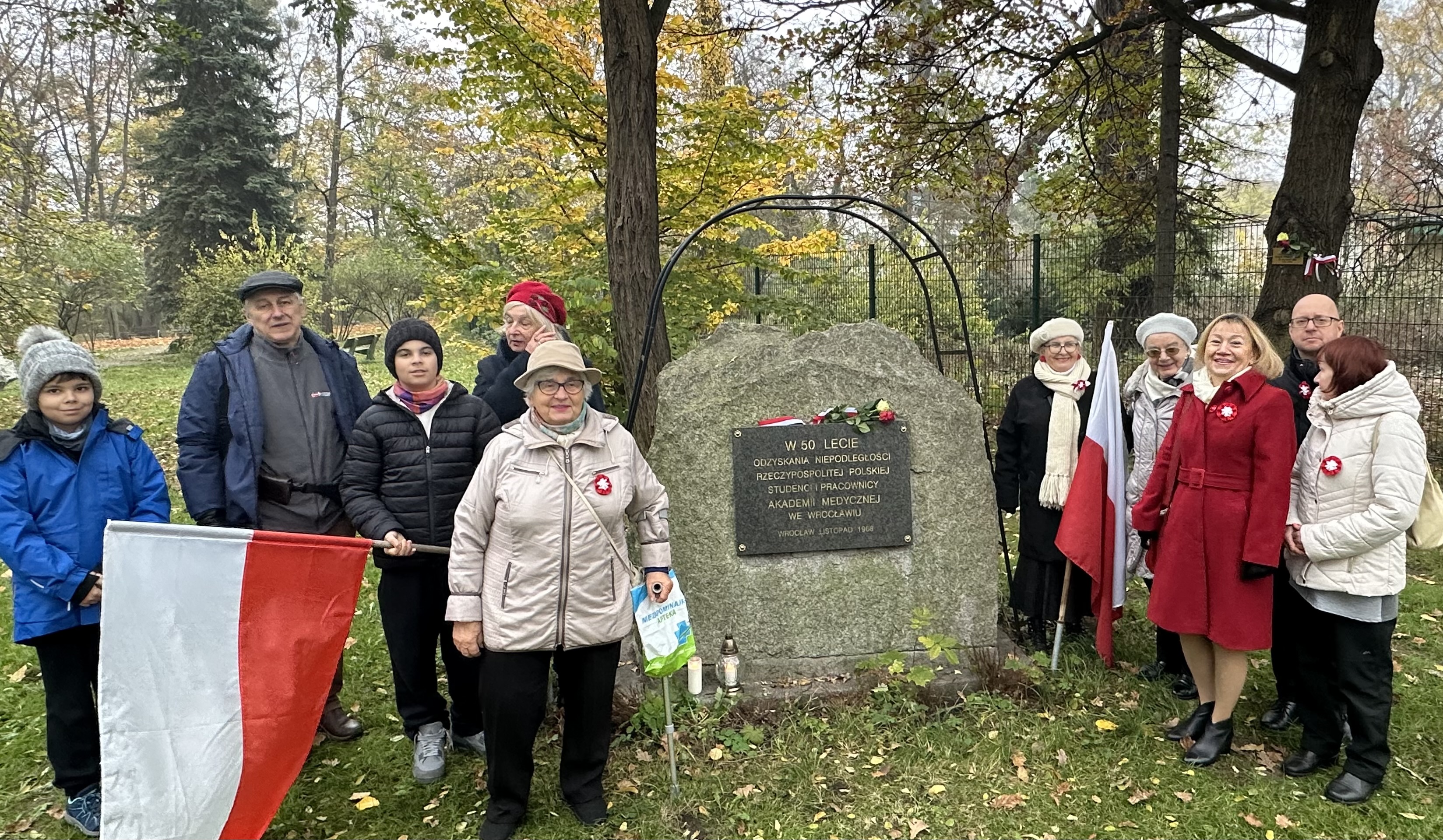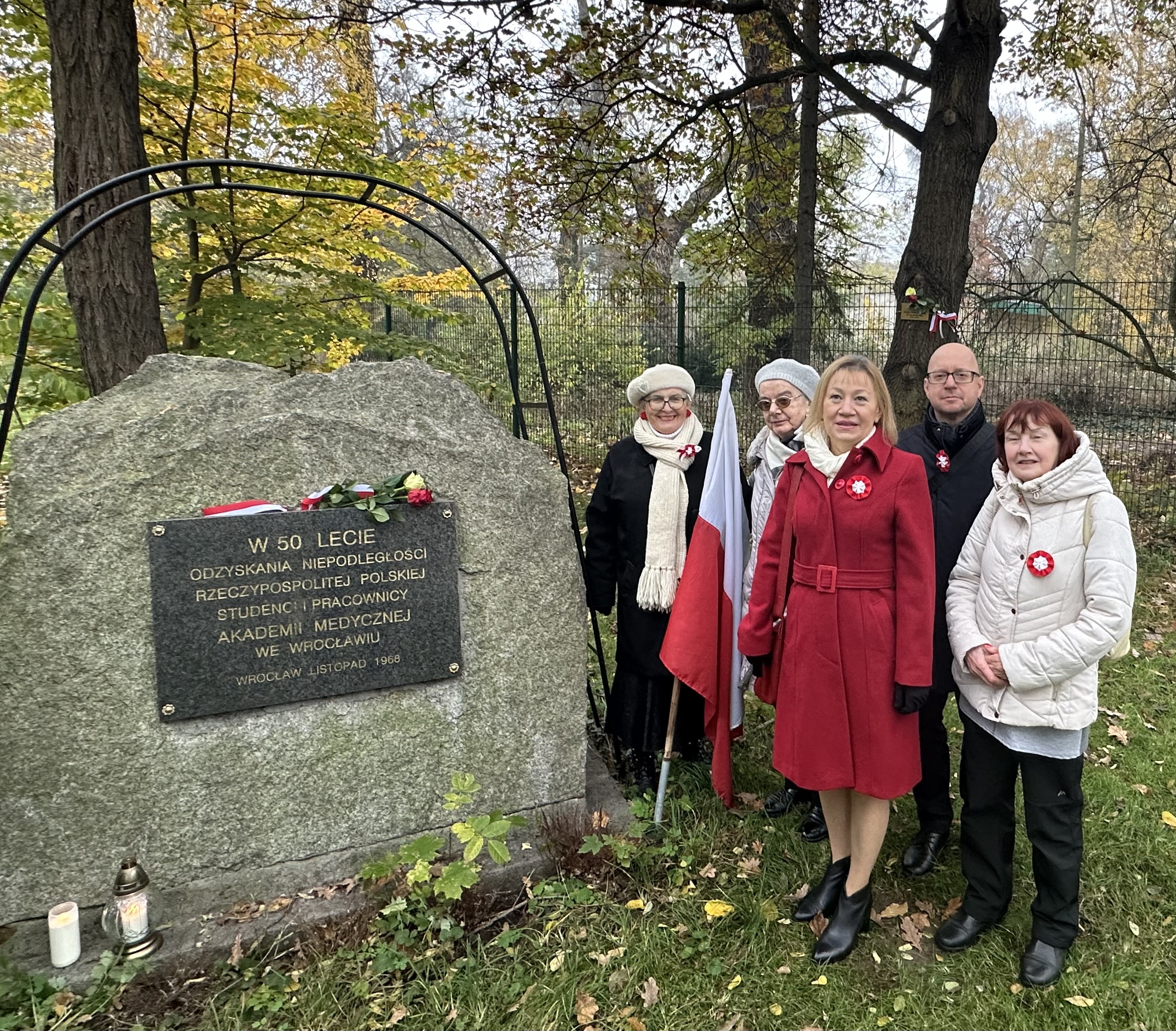Jak co roku przedstawiciele Dolnośląskiej Izby Lekarskiej oraz Ośrodka Pamięci i Dokumantacji Historycznej spotkali się w samo południe 11 listopada przy obelisku upamiętniającym odzyskanie przez naszą ojczyznę niepodległości. Obelisk powstał z inicjatywy studentów i pracowników Akademii Medycznej w listopadzie 1968 roku. Był to rok "wielkiego zrywu studentów" walczących o wolność słowa i podstawowe prawa obywatelskie. Kulisy powstania obelisku przybliżyła zebranym dr hab. Barbara Bruziewicz-Mikłaszewska przewodnicząca Ośrodka Pamięci i Dokumantacji Historycznej DIL oraz główna organizatorka corocznych spotkań przy obelisku.