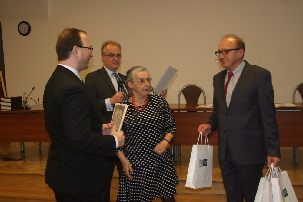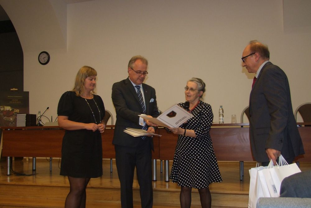 Profesor Edward Białek z Fundacji Silesia Nova wręczył wykładowcom ksiażki i upominki.