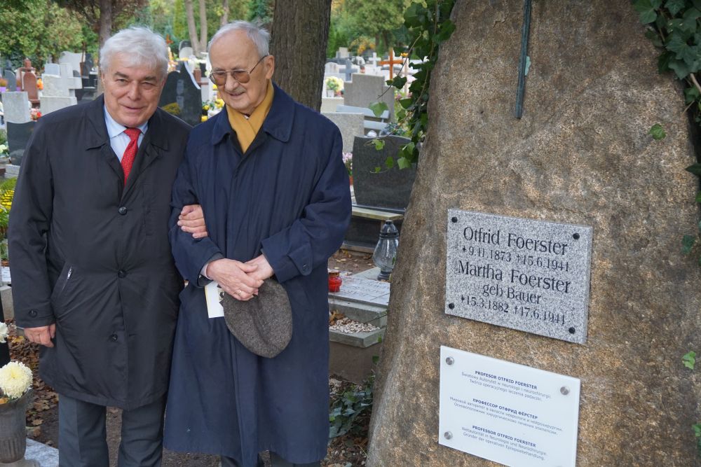 Pierwszym odwiedzonym grobem było miejsce spoczynku jednego z najwybitniejszych neurologów pierwszej połowy XX wieku profesora Otfrida Foerstera. Poza złożonymi kwiatami odsłonięta została tablica upamiętniająca osobę wielkiego lekarza. Inicjatorem wykonania tablicy był prof Tadeusz Bacia z Warszawy. Tablica zawiera krótką informację o O. Foersterze w trzech językach.