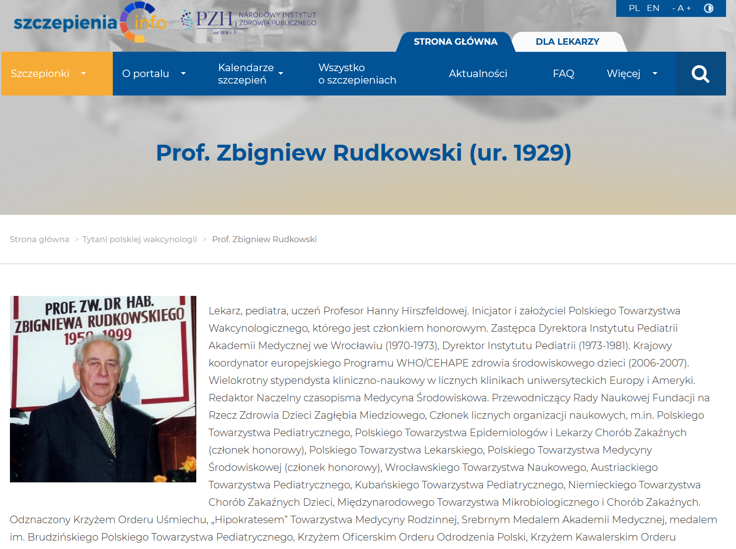 Przed kilkoma dniami portal szczepienia.info działający pod patronatem Narodowego Instytutu Zdrowia Publicznego - Państwowego Zakładu Higieny ogłosił listę dziewięciu "TYTANÓW POLSKIEJ WAKCYNOLOGII" Wśród najważniejszych osobistości tej gałęzi nauki znalezł się NASZ PROFESOR ZBIGNIEW RUDKOWSKI.